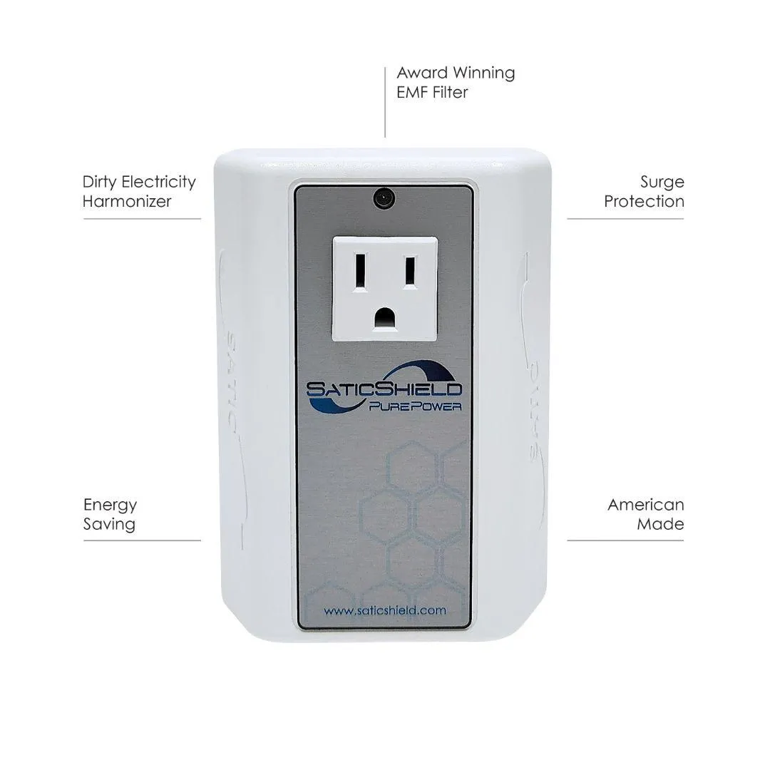 The Satic Pure Power Plug-In is for those in homes or offices with high levels of EMF and EMI, commonly called "dirty electricity". The Pure Power Plug-In plugs into any standard 120V outlet to reduce negative harmonics and EMF radiation while increasing efficiency and reducing power costs for common appliances such as refrigerators, freezers and air conditioners. One Pure Power Plug-In will filter and condition the power on the circuits on a single phase.This product is also known as the EMF Eliminator.